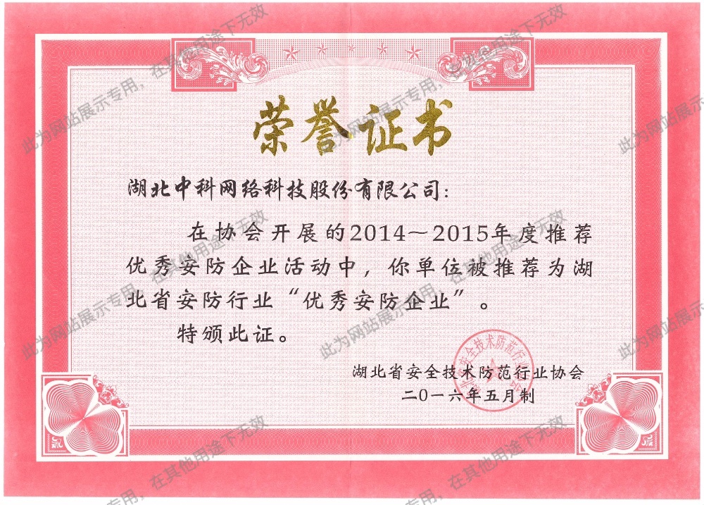 • 湖北省優(yōu)秀安防企業(yè)