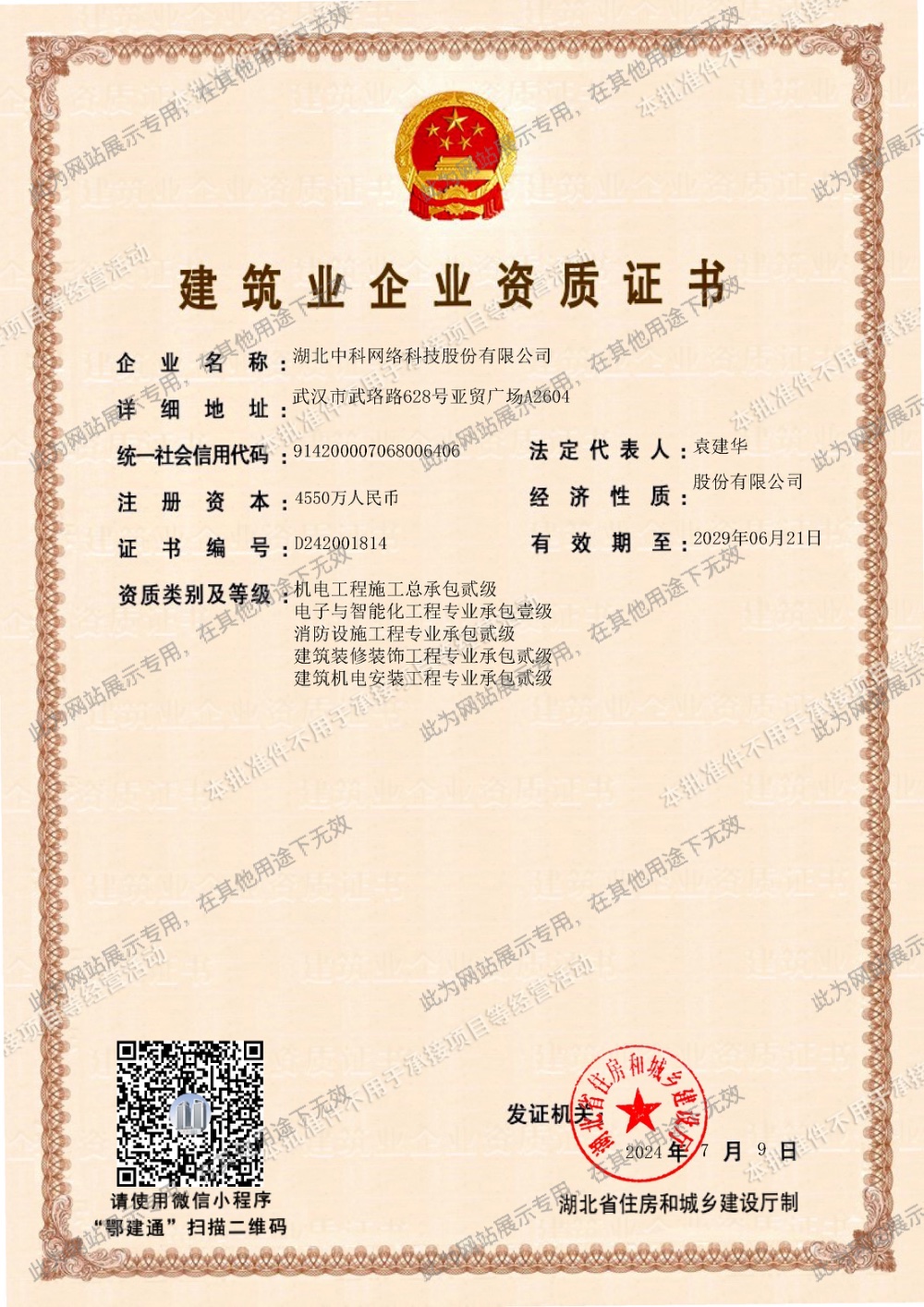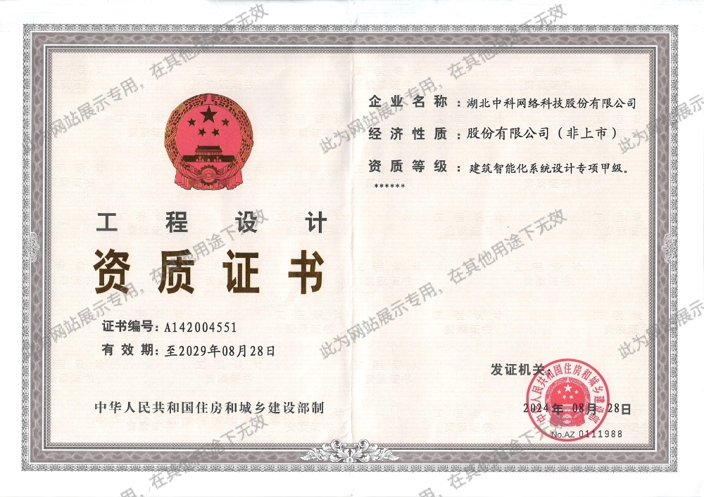 • 國家建筑智能化系統(tǒng)設(shè)計專項甲級資質(zhì)