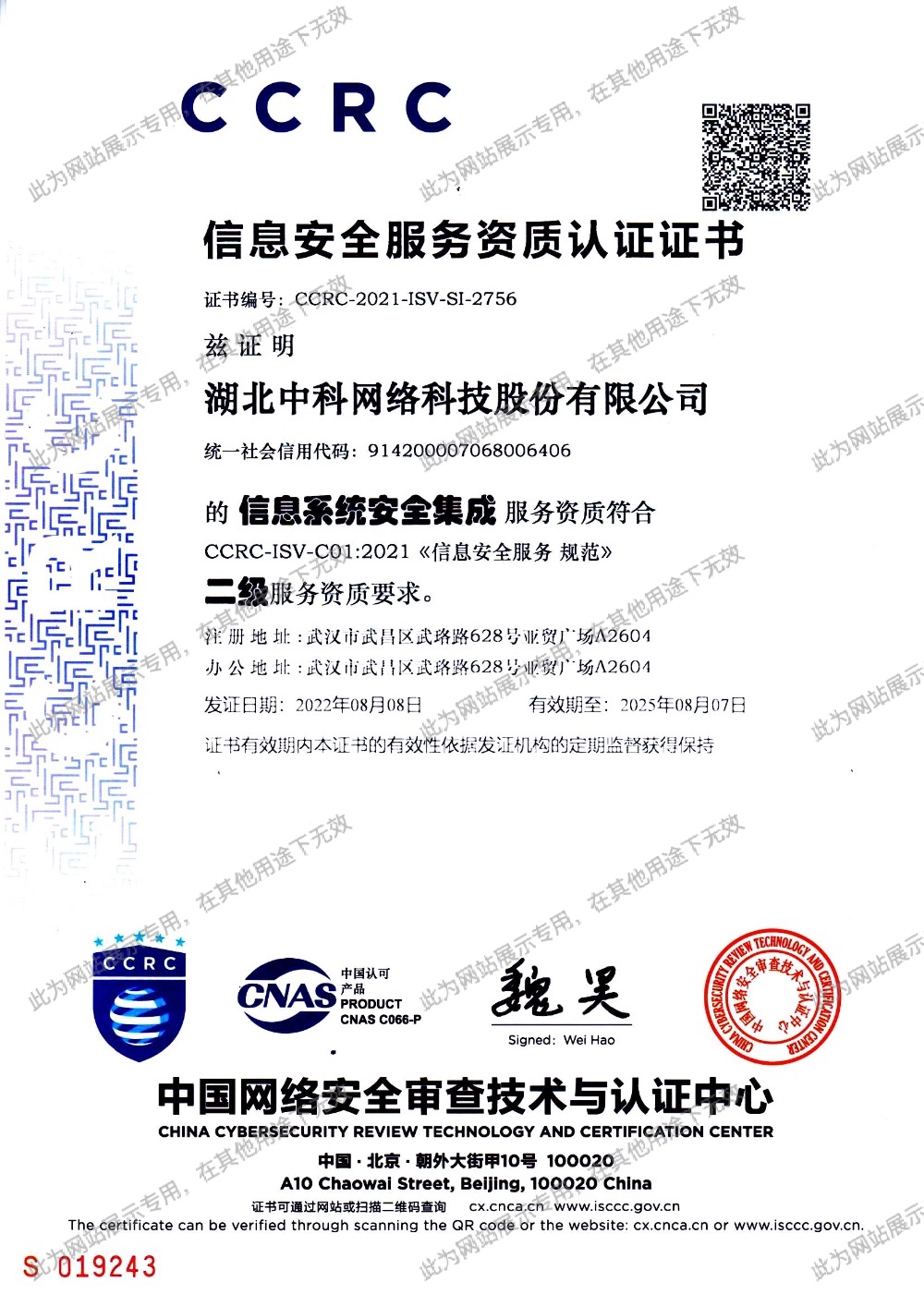 • CCRC 信息系統(tǒng)安全服務(wù)二級資質(zhì)